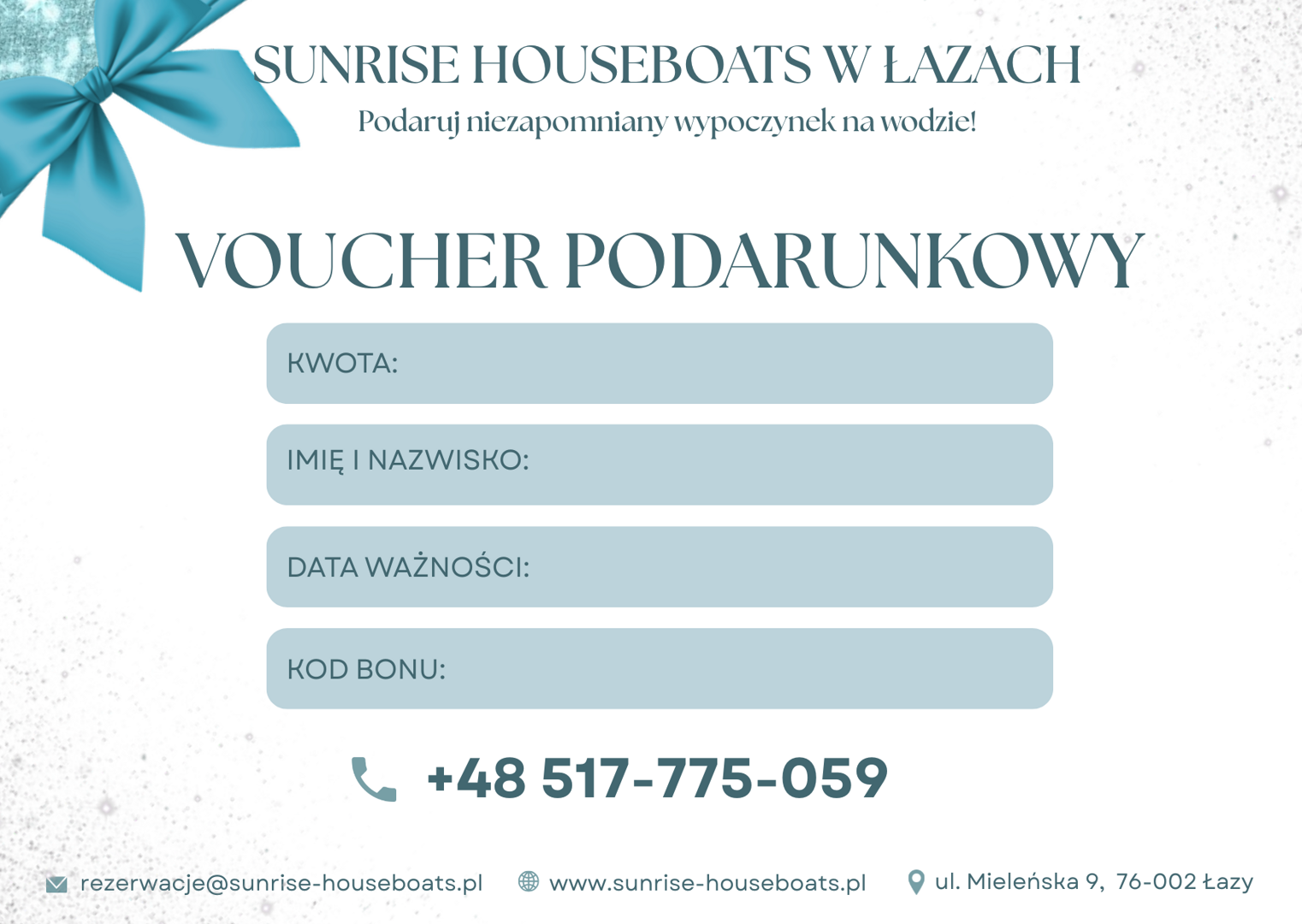 Voucher można wykorzystać wyłącznie na noclegi i usługi oferowane przez SunRise Houseboats.
